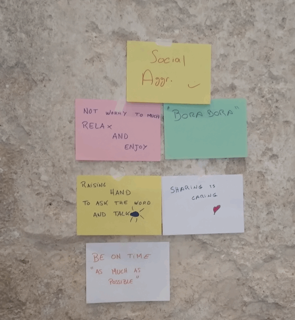 At the end of each day, all participants are invited to share their impressions, observations and possible developments for the rest of the project.