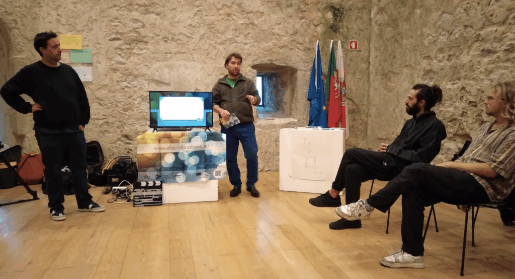 Together with all our partners, we decided to film three interviews with three different profiles of people working on the issue of discrimination identified by Salamandra Activa. The questions prepared by youth workers and young people were addressed to: Sandra Pinheiro – Graduate in Sociology, Languages and International Relations from the Faculty of Arts and Humanities of the University of Porto (FLUP). Rui Filipe Monteiro Soares – member of the Roma community and master’s student in sociology at FLUP (Faculty of Arts and Humanities of the University of Porto) and finally António Castanheira – Municipal Councillor.