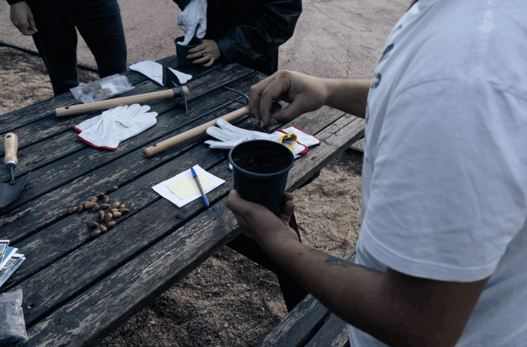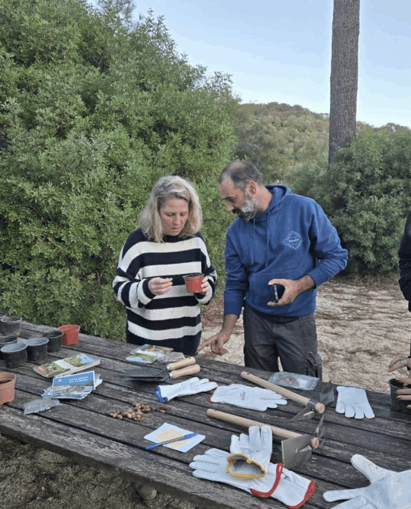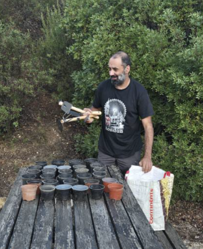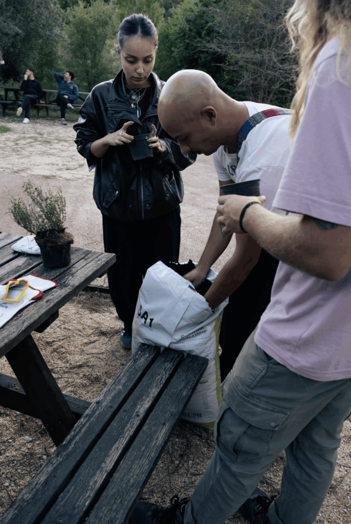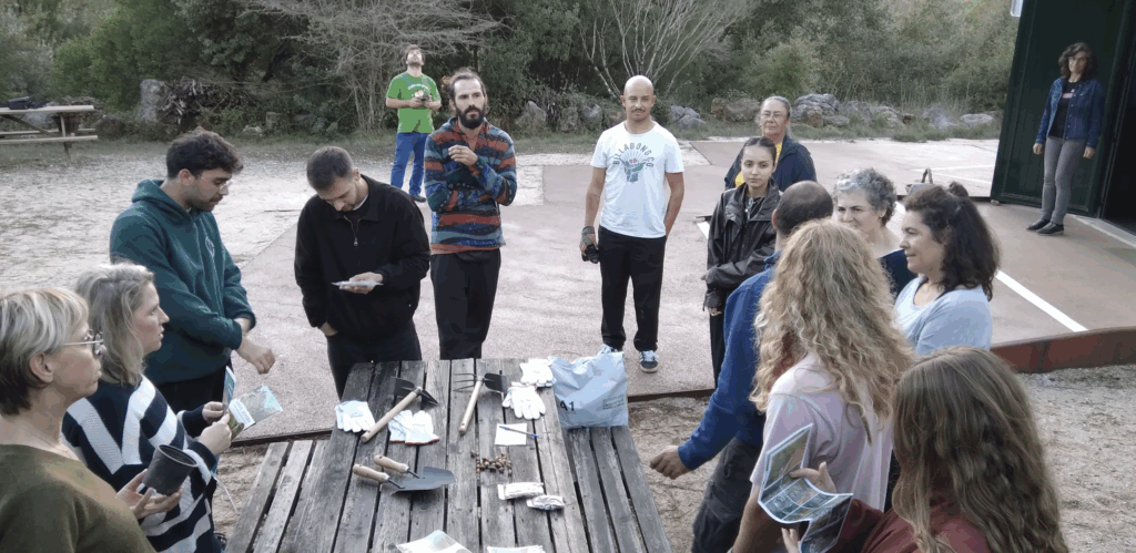 After spending the day creating images, practising photography and filming, as well as recording sound and preparing questionnaires for external contributors, we carried out the green action. Each participant planted a seed from a tree of their choice in a pot. In a few months, the park teams will transplant the trees to the site.